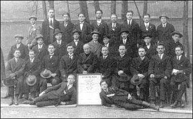 U prvom redu u sredini (s kravatom) je dr. Ivan Merz, lijevo do njega pater Bruno Foretić, a desno u svjetlom