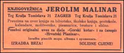 1927. Prva knjigovežnica na Pejačevićevom trgu. Reklamni letak za knjigovežnicu
