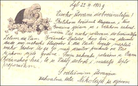 1933. Zahvala tete Nikolaje Jerolimu Malinaru za pomoć nezbrinutoj djeci
