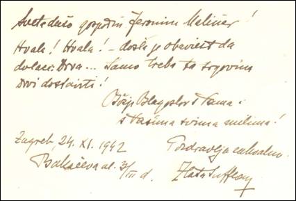 Po donošenju kući i otvaranju koverte moja supruga Verica i ja, bili smo duboko dirnuti sadržajem, komentarom i Vašom pažnjom. Stoga Vam u naše ime i ime svih članova naše obitelji, puno, puno hvala!