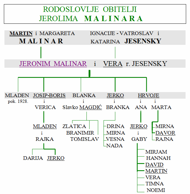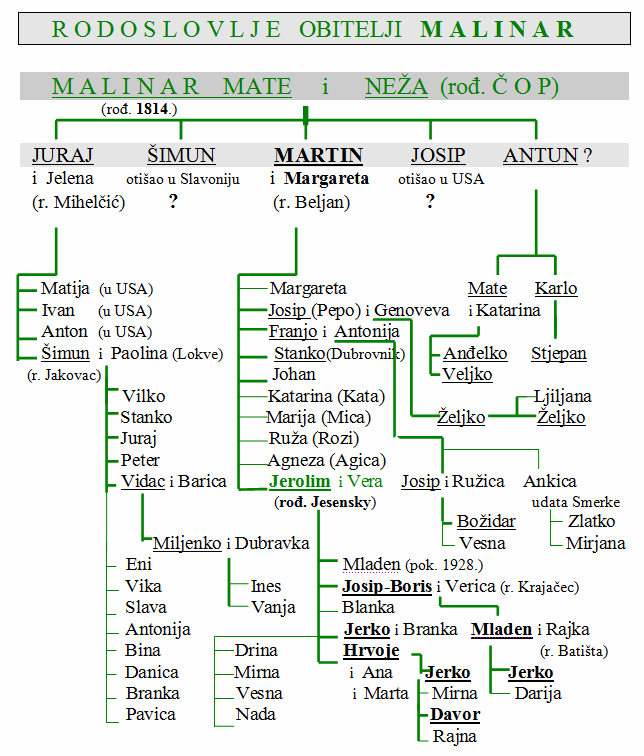 * Martin i Margareta Malinar imali su 18-ero djece, a Jeronim je bio njihovo posljednje dijete (upisana su samo imena njegove braće koja smo znali).